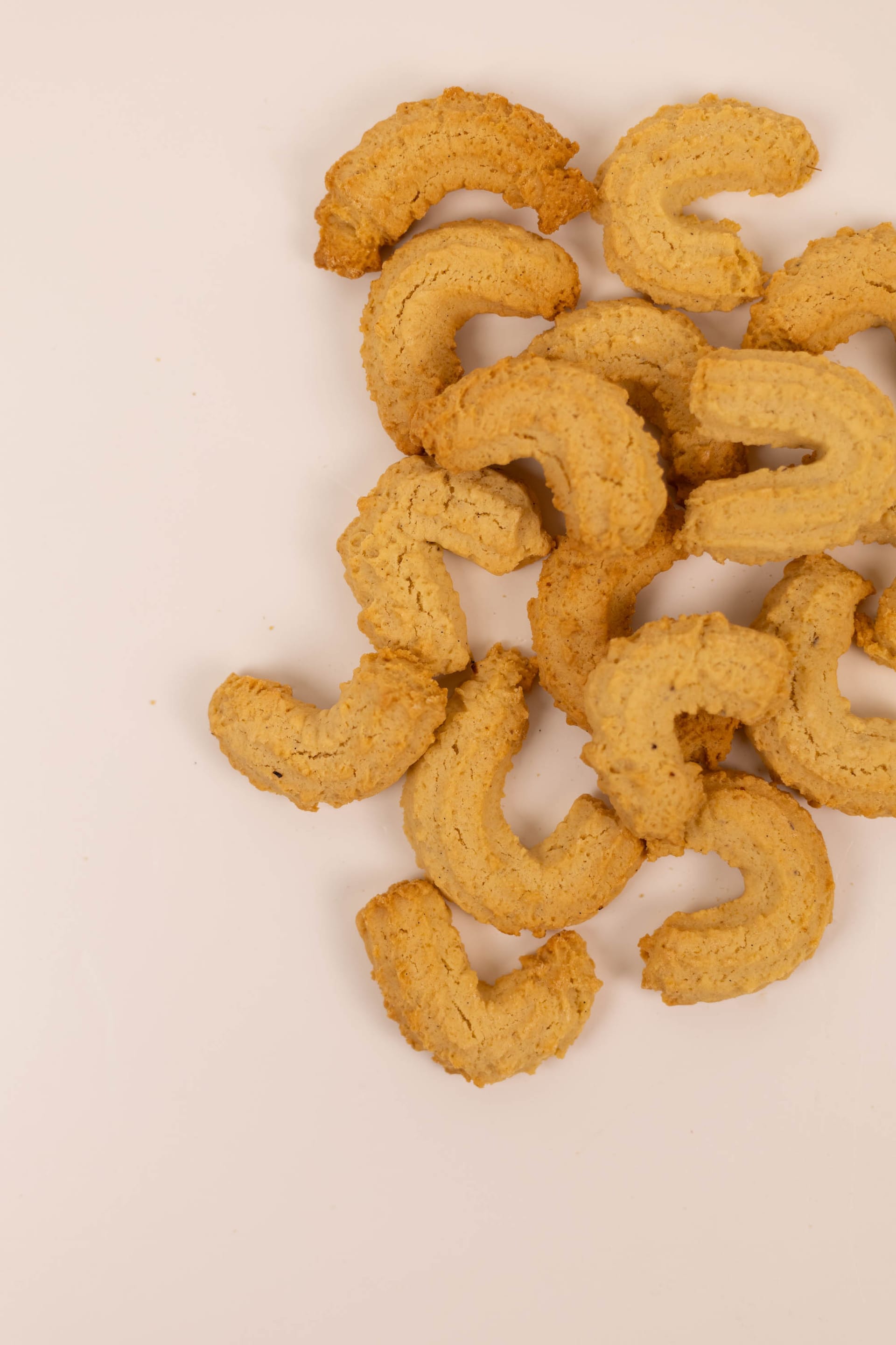 I nostri crumiri sono biscotti dal carattere autentico, realizzati secondo la tradizione piemontese con burro di latteria e miele millefiori della Val di Susa. La loro tipica forma arcuata racchiude una frolla dorata, friabile e profumata, che sprigiona note dolci e delicate di miele. Ogni morso racconta la cura artigianale con cui vengono preparati, l’equilibrio perfetto tra la ricchezza del burro e la naturale aromaticità del miele locale. Ideali per la colazione o un momento di piacere, i crumiri portano in tavola la semplicità genuina e il gusto inconfondibile della pasticceria piemontese.